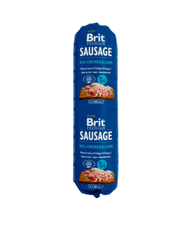 Brit Sausages sú jedinečnou kombináciou skutočných kúskov mäsa a ľahkého paté. Vysoký obsah mäsa 95% zaisťuje skvelú chuť a výbornou stráviteľnosť. Široká škála rozmanitých chutí ponúka príjemné spestrenie psieho jedálnička a je vhodným doplnkom ku granulám, BARF strave i varenému mäsu.
