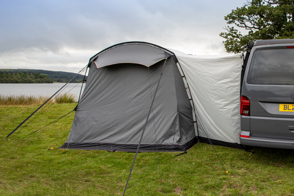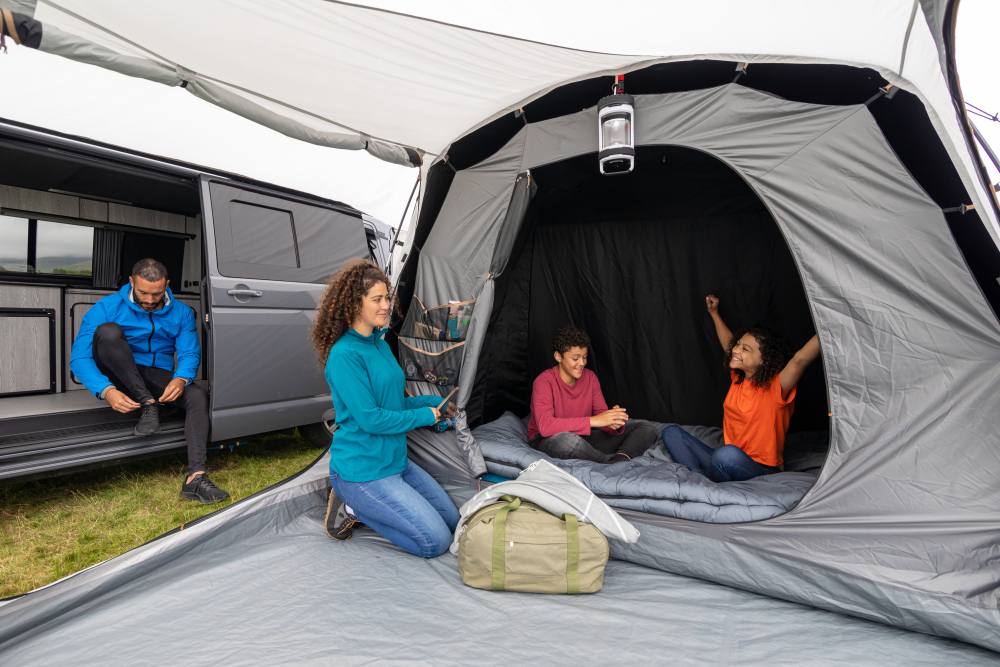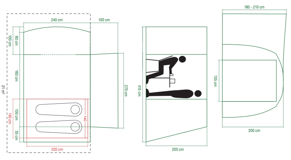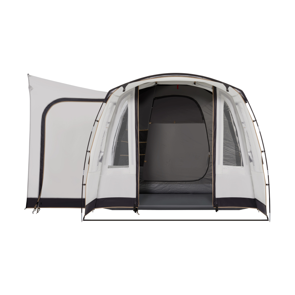 Predstan ponúka priestrannú obytnú časť a samostatnú spálňu, vďaka čomu získate viac priestoru na relax, varenie alebo uskladnenie vybavenia. Tunelová konštrukcia umožňuje jednoduché pripojenie k vozidlám s výškou približne 180 – 220 cm, čo z neho robí ideálne riešenie pre väčšinu campervanov.