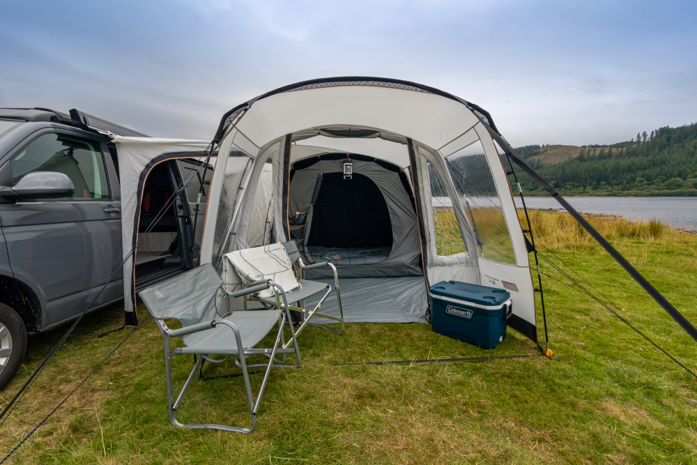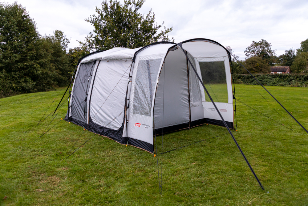 Coleman Journeymaster Pro L je moderný predstan určený pre campervany a dodávky, ktorý výrazne rozšíri obytný priestor počas kempovania. Poskytuje komfortné miesto na spanie aj oddych, ochranu pred nepriaznivým počasím a zároveň zachováva jednoduché prepojenie s vozidlom. Vďaka priestrannej konštrukcii, vysokej vodoodolnosti a kvalitným materiálom je ideálnou voľbou pre rodinné dovolenky aj dlhšie cestovanie.
