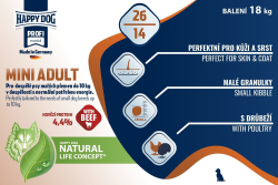 Vedecky je potvrdené, že naša koncepcia Happy Dog Natural Life Concept® ponúka vášmu psovi dokonalú kombináciu všetkých životne dôležitých živín. Vychádzame z fyziológie výživy vlka a jeho pôvodnej prirodzenej potravy, aby sme optimálne a druhovo správne podporili celý organizmus psa.