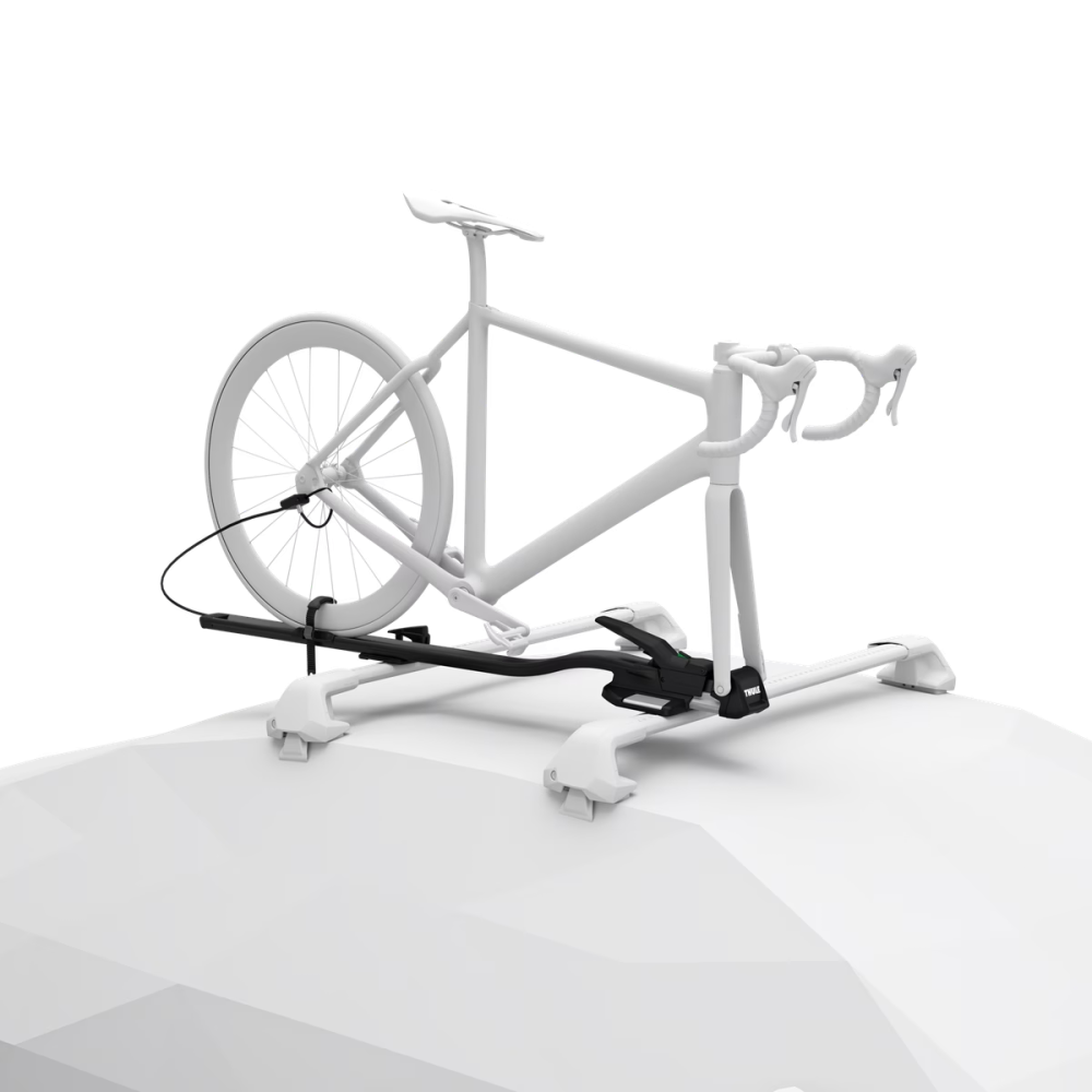 Bicykel je bezpečne upevnený vďaka obmedzovaču momentu utiahnutia Thule AcuTight, zvukovému a vizuálnemu potvrdeniu správneho upevnenia. Vidlicu z nosiča ľahko uvoľníte pomocou uvoľňovacej páky.