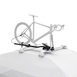 Pri montáži bicykla na Thule TopRide jednoducho odstráňte predné koleso z bicykla a pripevnite adaptér ešte na zemi a až potom ho zdvihnite na miesto. Zatlačením páčky nadol ho zaistíte. Na záver pripevnite remienok zadného kolesa a uzamknite koleso. Ste pripravení vyraziť za pár sekúnd. Nie je nič jednoduchšie a rýchlejšie!